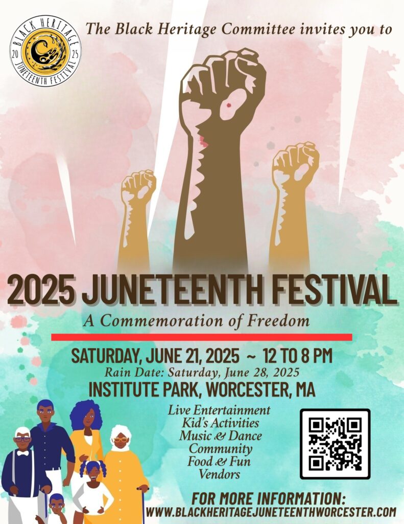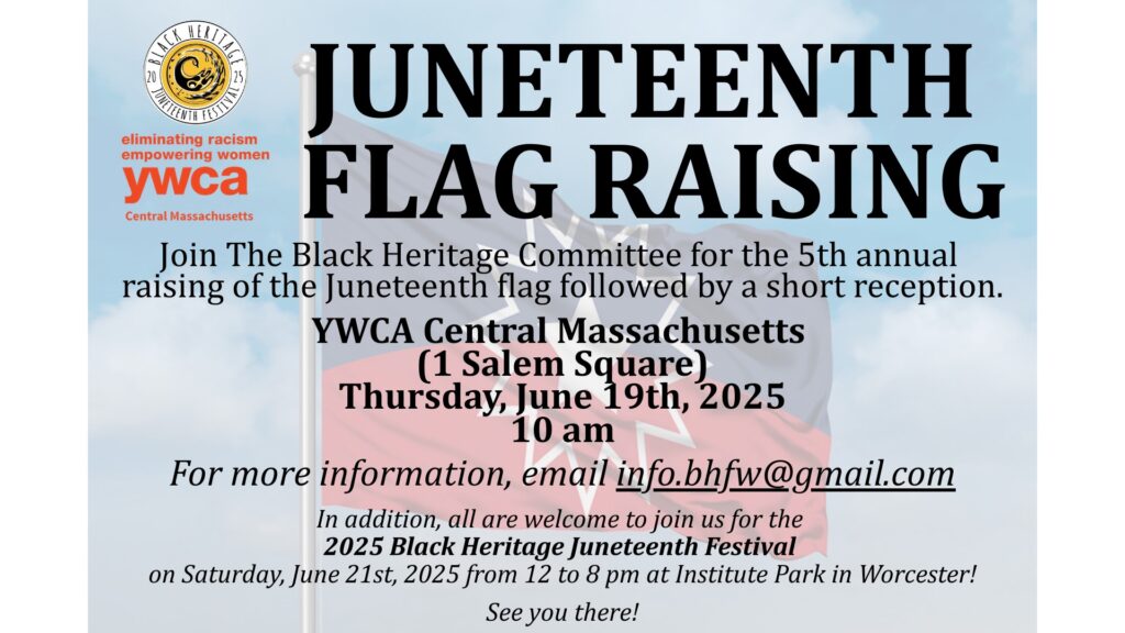 “The Black Heritage Committee has been busy planning the 2025 Festivities to commemorate Juneteenth in Worcester. We wanted to bring it to our community’s attention that this year’s raising of the Juneteenth flag will be held at the YWCA Central Massachusetts.